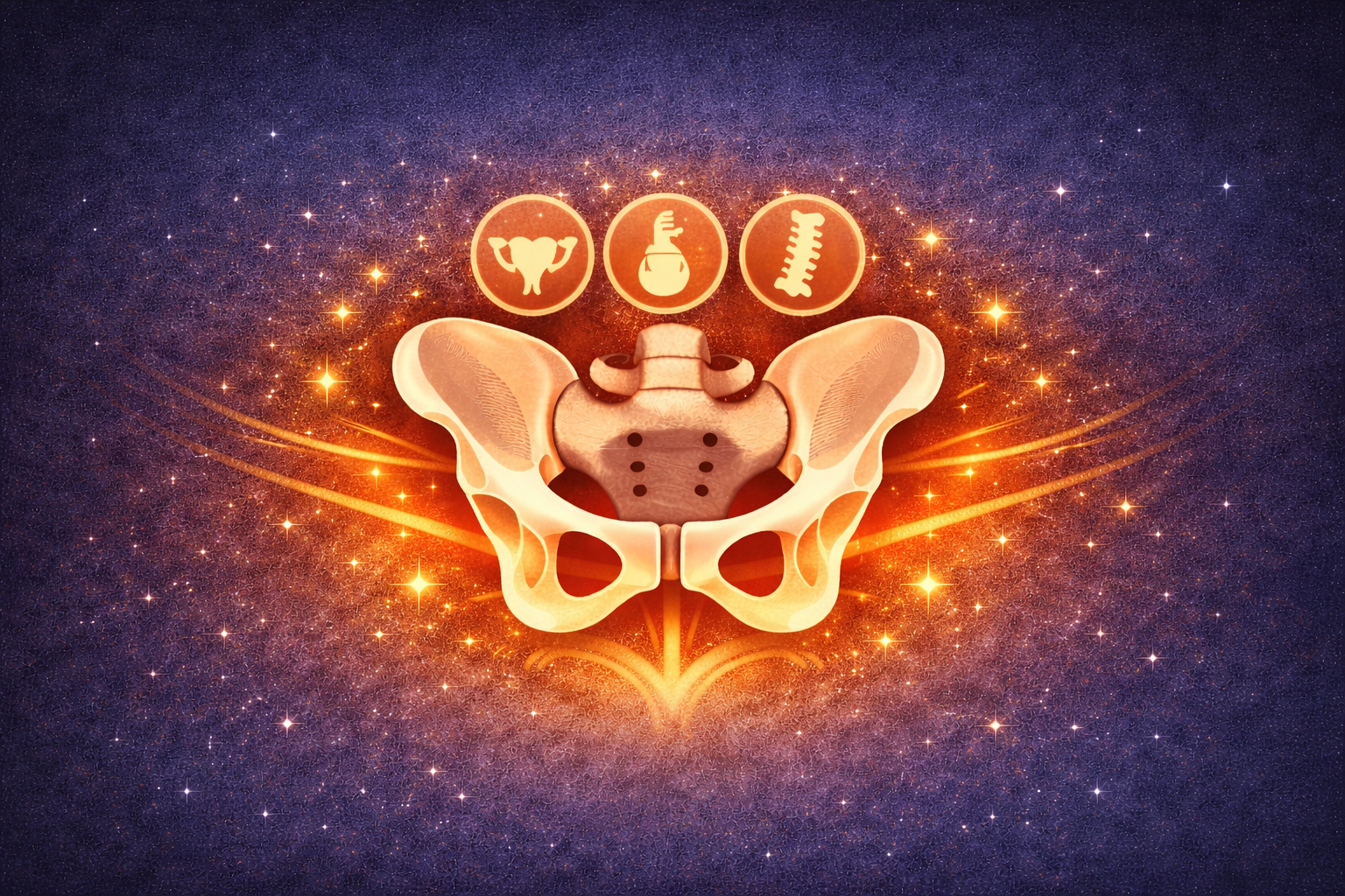 The pelvic floor is a group of muscles, ligaments, and connective tissue that sit at the bottom of your pelvis. These muscles support the bladder, uterus, and bowels and play a key role in posture, stability, breathing and pressure control.